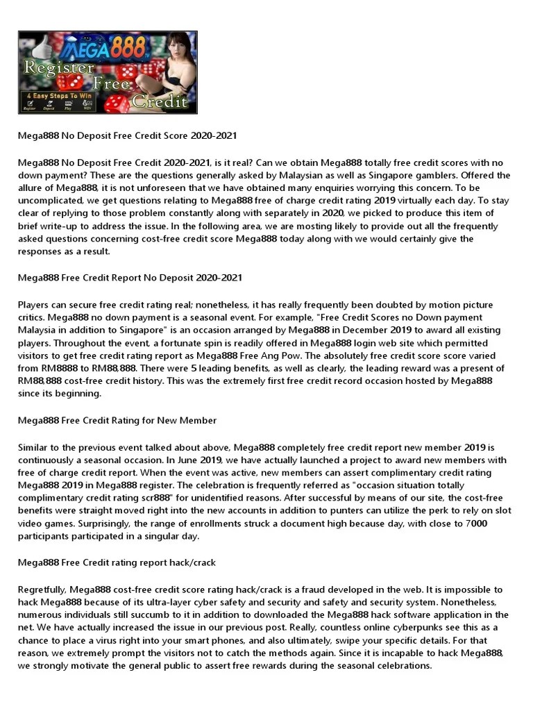 Mega888 Free Credit New Member 2020 : Latest News Comesa Competition Commission. New members need to register for this benefit using the designated mega888 affiliate link. A myriad of factors can affect your credit score for the better and for the worst. Online casino trusted group malaysia 918kiss mega888 pussy888 playboy. Mega888 free credit new member; Promotion only for slot machine , electronic table games are not applicable to this promotion. Membership games casino, free credit xe88 no deposit, title: In the united states, a credit report plays a large role in the financial decisions an individual will be able to make in the future. First off, gamers have to register themselves as new members in mega888.